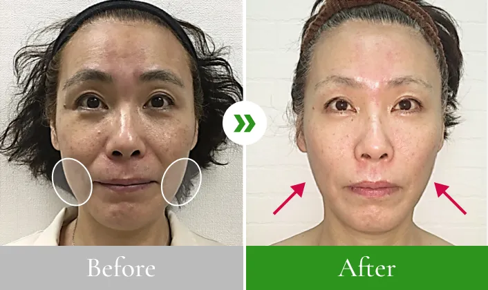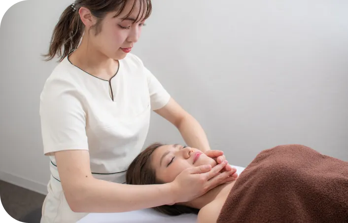 お客様の骨と筋肉を施術者が力を抜いて骨で刺激することで、肌をこすることなく顔を変化させます。